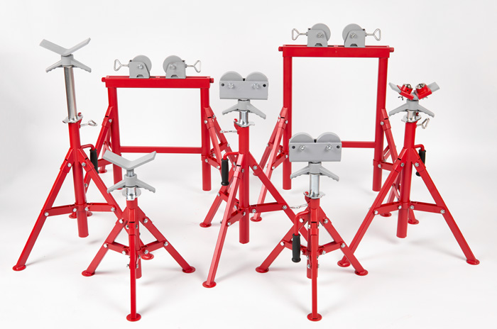 При работе с резьбонарезными или желобонакаточными станками нередко случаются ситуации, когда приходится работать с трубами большой длины. В таких случаях неизбежно возникают трудности, вызванные перекосом трубы из-за ее большого веса, так как труба закрепляется в станке консольно. Идеальное решение - обеспечить трубе вторую опору и снять консольную нагрузку. Именно для этого служат специальные подставки и опоры для труб.