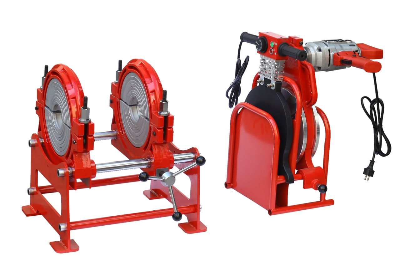Компактный механический аппарат для стыковой сварки, применяется в полевых условиях, на строительной площадке, в цеху и в стесненных условиях для стыковой сварки полиэтиленовых и полипропиленовых труб, соединительных деталей. Диапазон свариваемых труб 90 – 250 мм.